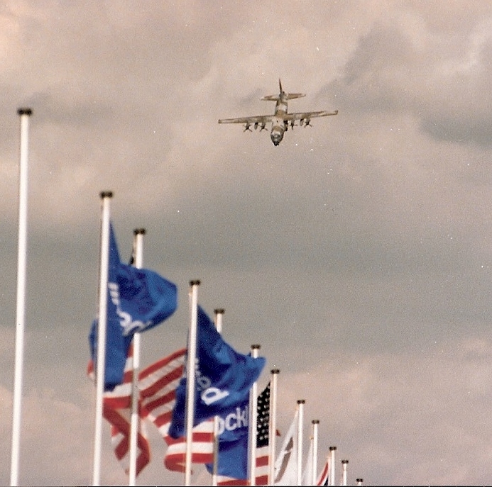 The Khe Sanh approach to landing. A C-130 demonstrates a tactical approach at Fairford circa 1985. Not an angle of attack to be flown when The Falcons parachute display team were using it – see Chapter 13 (Photo: MC)