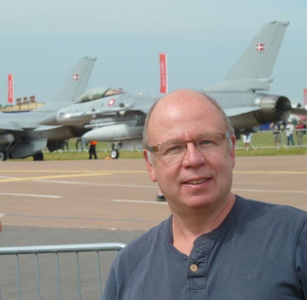 Mike Curtis at Fairford with a couple of Danish F16s awaiting their place in the static display