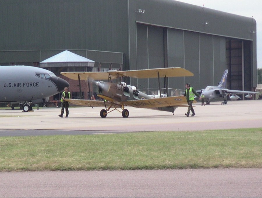 Tiger Moth similar to the one in which Colin Curtis did his elementary flying training at Yeadon in 1941. He was involved in an accident during the course. This Moth was in the static at the Waddington air show in 2005, alongside modern types such as the KC135 and the Tornado. See Chapter 4 (photo: MC)