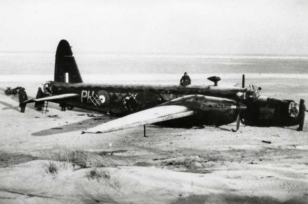 The first of three Wellingtons that Ludwig Becker shot down on the evening of 20th January 1942. Two of the crew were killed in the air before the captain Bill Thallon told the others to bail out. He later crash-landed Z8370 on the beach on the north side of Terschelling off the Dutch coast. Full story in Chapter 16 (Photo: J.A Duyf & Willem de Jong, Netherlands)